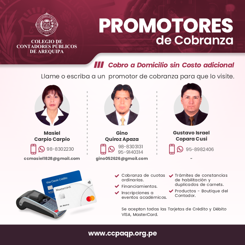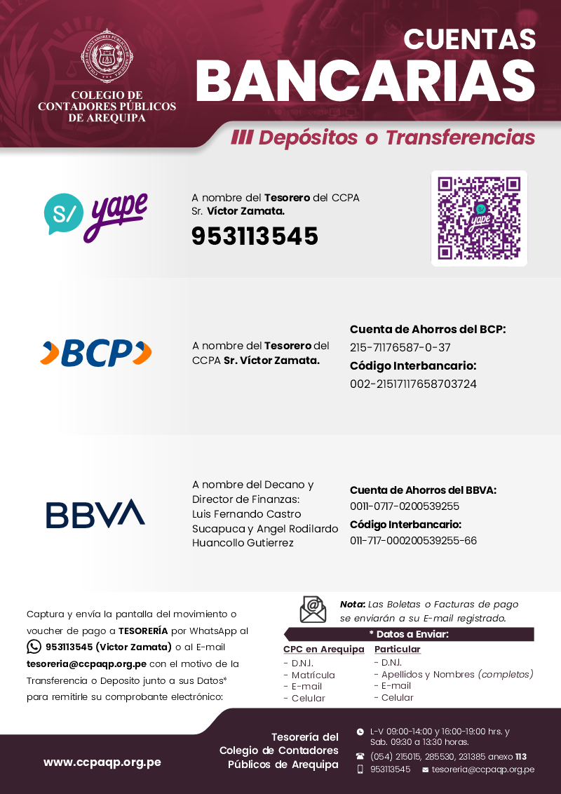 Tesorería del Colegio de Contadores Públicos de Arequipa.